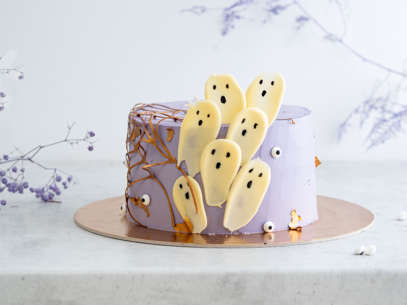 | Link do porady: https://wszystkiegoslodkiego.pl/index.php/porady/jadalna-pajeczyna-i-platki-zlota-jak-udekorowac-tort-na-halloween |
