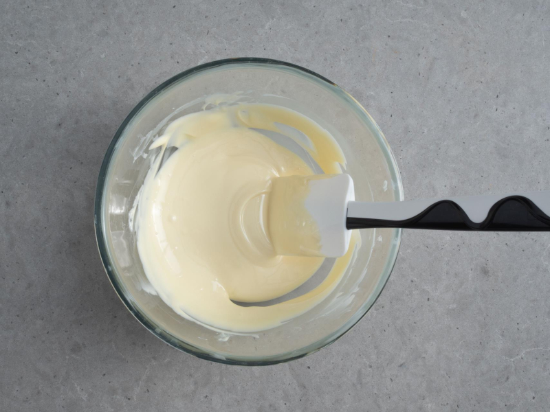 Białą czekoladę rozpuść w kąpieli wodnej (uważaj, aby woda nie dostała się do czekolady) lub interwałowo w kuchence mikrofalowej.