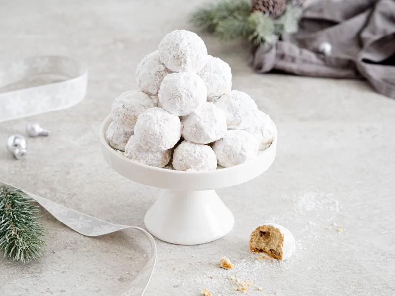 Pyszne, urocze i szybkie w przygotowaniu! Idealnie sprawdzą się jako słodki przerywnik na świątecznym stole, a ozdobnie zapakowane będą świetnym dodatkiem do prezentów pod choinką. Ciasteczka śnieżne kule z orzechami pekan są wciągające i mocno uzależniają!