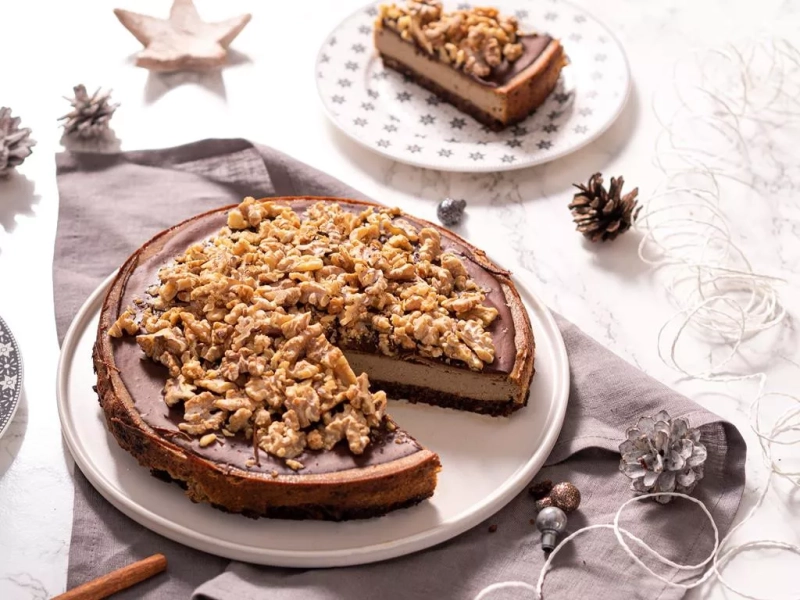 Wyjątkowy spód z daktyli, nerkowców i suszonych śliwek to świetna baza dla piernikowego tofurnika. Masa z tofu zbogacona o przyprawę korzenną ma zdecydowanie zimowy, świąteczny smak! Podpraż orzechy włoskie wydobywając ich aromat i udekoruj ciasto. Smacznego!