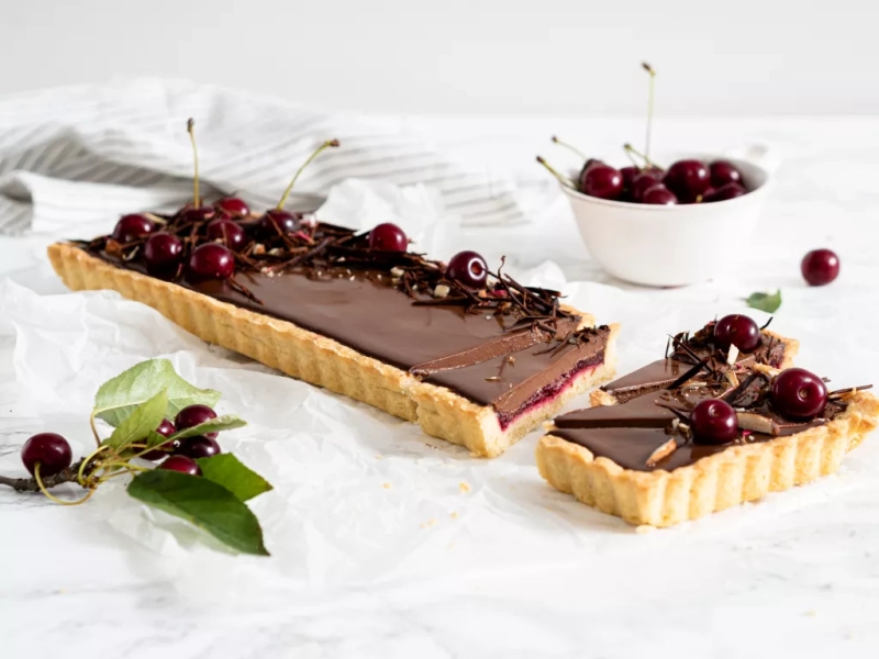 Daj się skusić na wegańską tartę czekoladową z wiśniami.