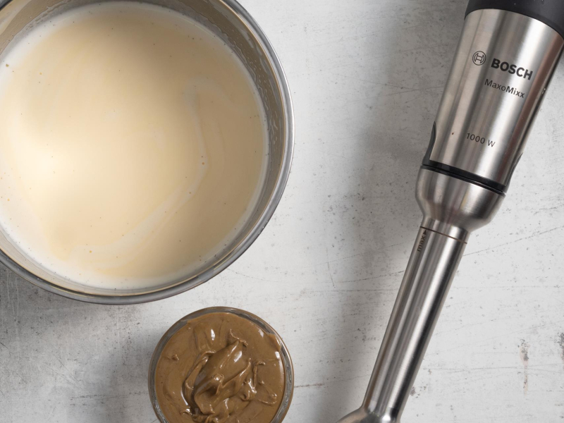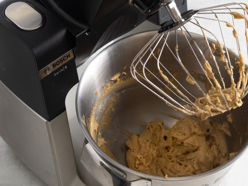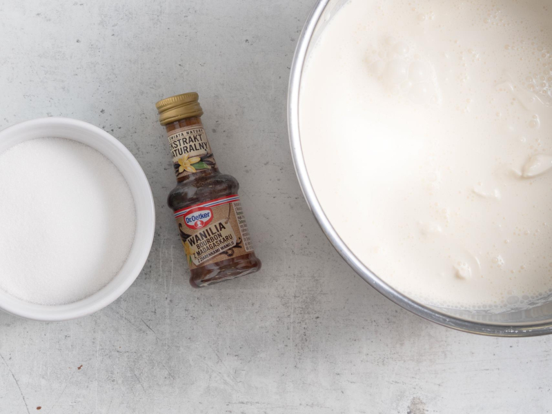 Schłodzony krem przełóż do misy miksera i ubijaj około 2 minut na puszystą masę.