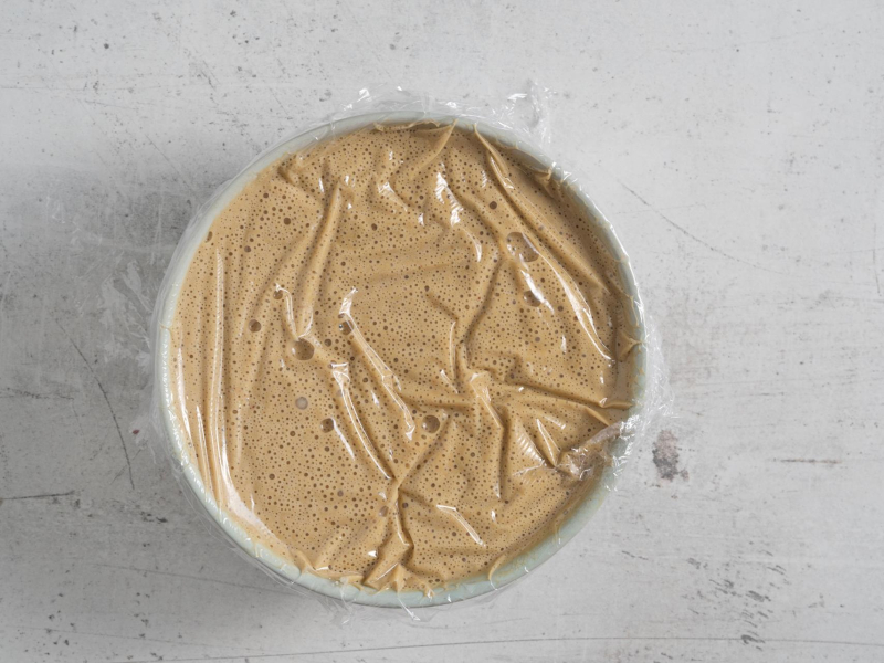Przykryj krem folią w kontakcie i odstaw do lodówki na minimum 6-8 godzin (idealnie na całą noc).