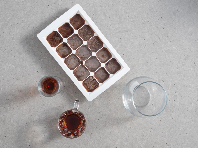 Mrożona kawa w nieco innym wydaniu - pojemnik na kostki lodu wystarczy napełnić mocnym, aromatycznym espresso i zamrozić☕ Kawowe kostki świetnie sprawdzą się jako baza do mrożonej kawy (wystarczy zalać je mlekiem w towarzystwie ulubionych dodatków jak lody, bita śmietana czy syrop smakowy), a możesz je także zblendować lub skruszyć - w ten sposób otrzymasz pyszne, intesywnie kawowe frappe!