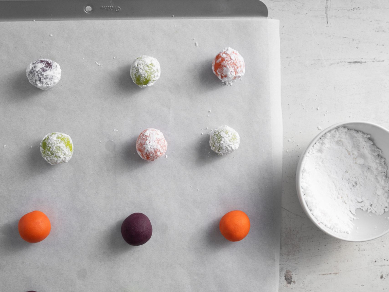 Wymieszaj ciasto, aby barwnik równomiernie się rozpuścił. Odstaw do lodówki na minimum 3 godziny, przykryte folią spożywczą.