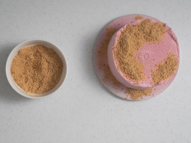Na ozamszowany tort wysyp pokruszone ciasteczka - będą imitować plażowy piasek.