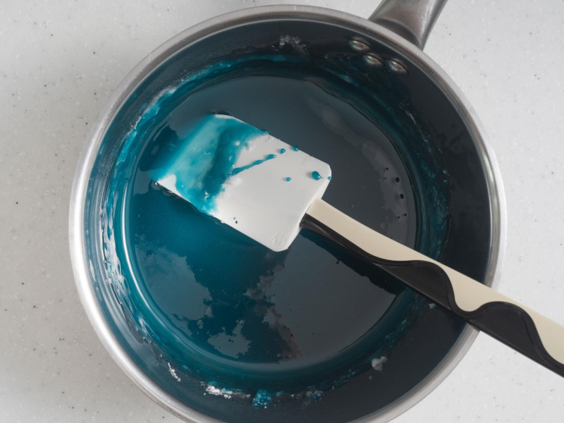 Szybkim, sprawnym ruchem wylewaj izomalt do silikonowych foremek. Możesz pomóc sobie np. niewielką łyżeczką. Pamiętaj, że izomalt szybko zastyga.