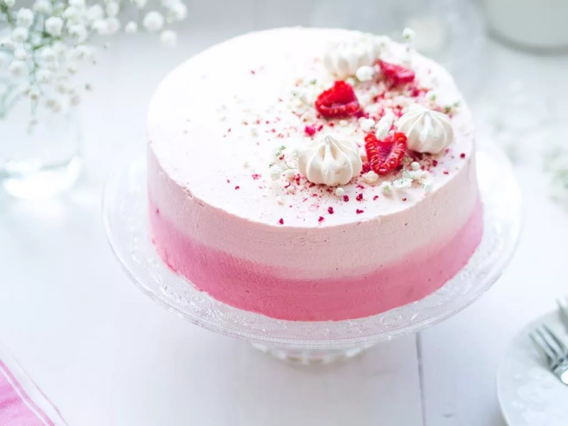 Lekki tort komunijny z malinami, czyli smaczny klasyk w sam raz na komunijne przyjęcie. Jak uzyskać efekt ombre na wierzchu tortu? Krem śmietankowy do dekoracji podziel na 3 części i dodawaj barwnik, do uzyskania różnych odcieni. Różowy, błękitny, a może zielony? Zdecyduj, który kolor najlepiej będzie pasował do Twojego przyjęcia.