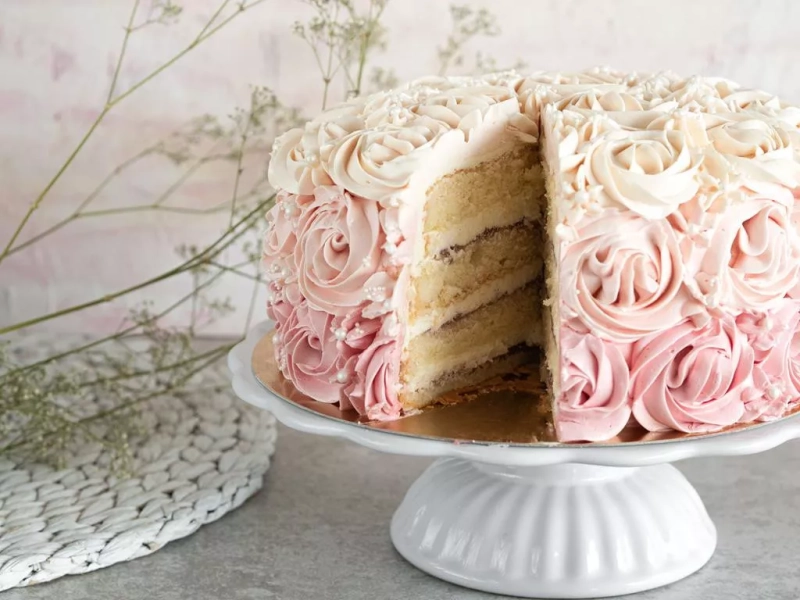 Przepis na tort ombre z różami z kremu maślanego