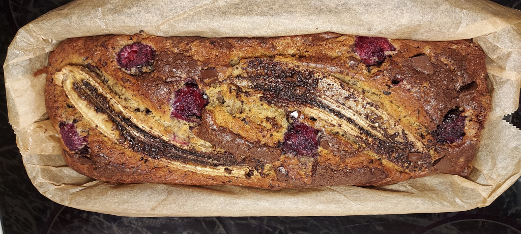 | Link do przepisu: https://wszystkiegoslodkiego.pl/index.php/przepisy/babki-i-ciasta-ucierane/czekoladowy-chlebek-bananowy-z-malinami |