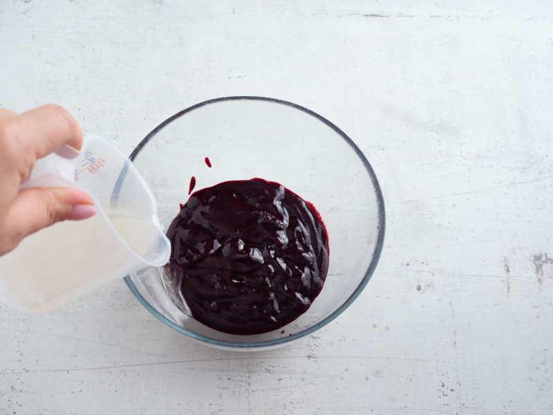 Owoce przecedź do miski przez sitko. Żelatynę rozpuść i wymieszaj z porzeczkami.