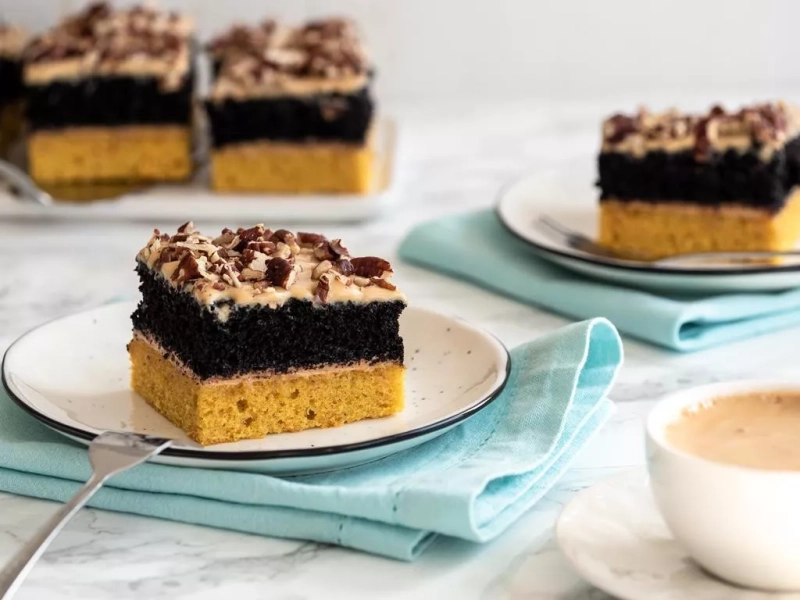 Królowa jesieni, dynia, całkiem nieźle odnajduje się w słodkich przepisach. A duet z ciastem czekoladowym wychodzi jej naprawdę znakomicie. Lekko słona polewa kajmakowa i włoskie orzechy to wisienka na torcie w tym przepisie. I nie zapominajmy, że nic nie pachnie tak jak kuchnia wypełniona aromatem pumpkin spice!