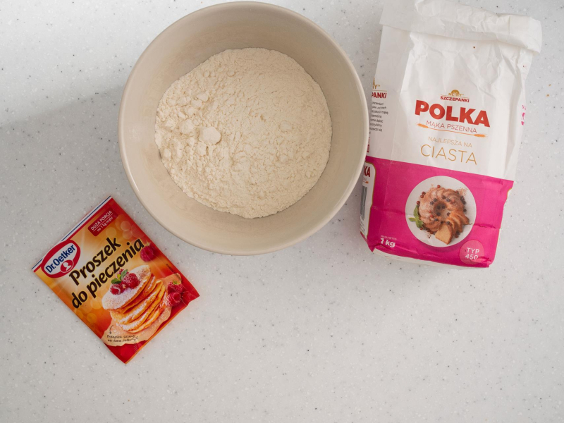 W misce wymieszaj mąkę z proszkiem do pieczenia.