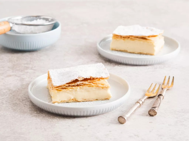 Napoleonka od lat króluje wśród ulubionych ciast – i nic w tym dziwnego! Jest pyszna, łatwa do przygotowania, a jej sekret tkwi w prostocie. Dwa delikatne płaty ciasta francuskiego otulają aksamitny waniliowy krem budyniowy ze śmietanką😉