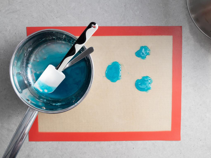 Pozostałą część izomaltu wylej na matę. Izomalt szybko zastyga, dlatego musisz zrobić to w miarę sprawnie.