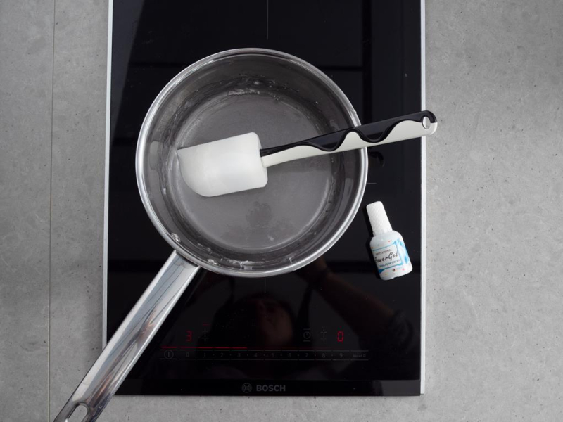 Podgrzewaj przez kilka minut, aby izomalt całkowicie się rozpuścił - powinien być przezroczysty i klarowny. Zbyt wysoka temperatura lub czas gotowania sprawią, że nabierze żółtego koloru.