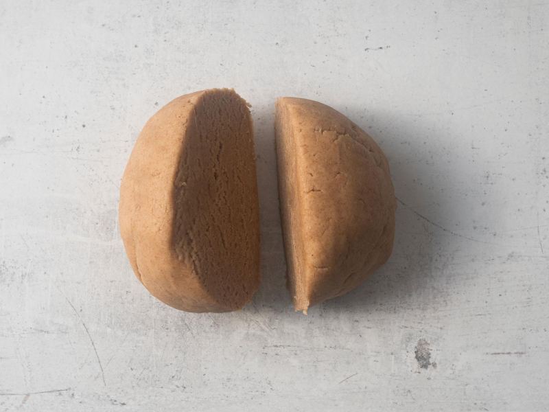 Ciasto podziel na dwie części. Jedną część odłóż do lodówki na czas pracy z pierwszą porcją ciasta.