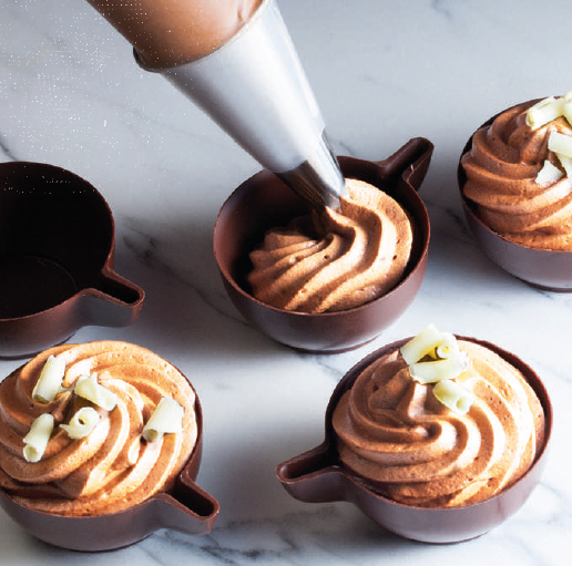 - szprycowania dekoracji na ciastach, deserach czy monoporcjach za pomocą tylek cukierniczych,
