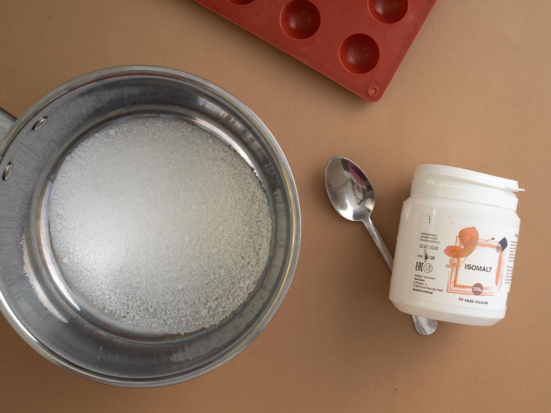 Pamiętaj, że izomalt rozpuszczamy do bardzo wysokiej temperatury - uważaj, aby podczas pracy nie poparzyć się.