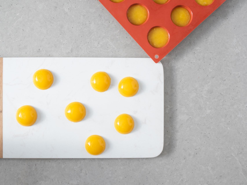 Żelkę mango użyjesz jako owocową wkładkę do monoporcji lub tortu - pamiętaj, że średnica żelki powinna być mniejsza niż średnica deseru czy tortu.