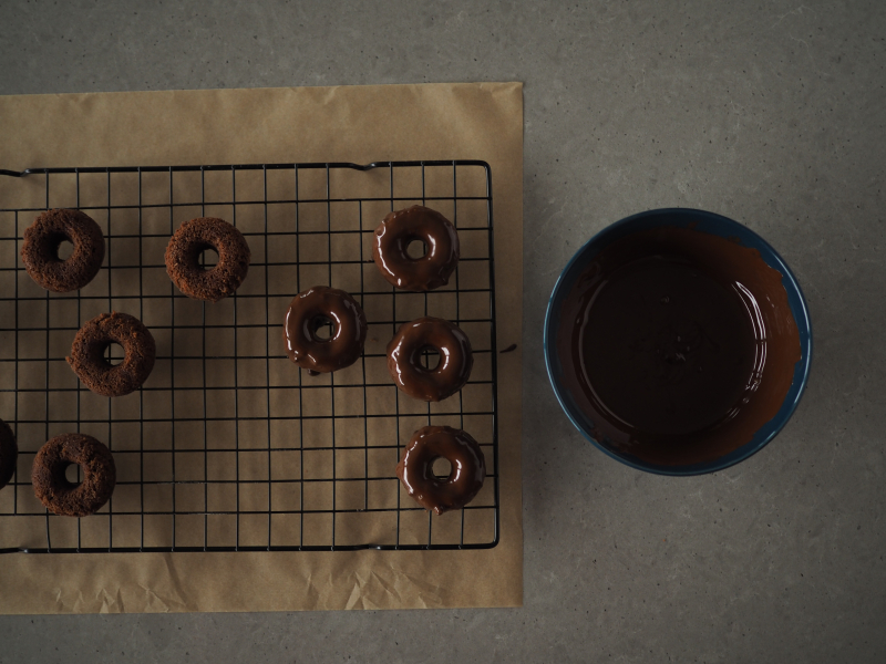 Donuty brownie piecz 15-17 minut. Odstaw do całkowitego wystygnięcia i delikatnie wyjmij upieczone donuty z formy.