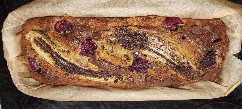 | Link do przepisu: https://wszystkiegoslodkiego.pl/przepisy/babki-i-ciasta-ucierane/czekoladowy-chlebek-bananowy-z-malinami |