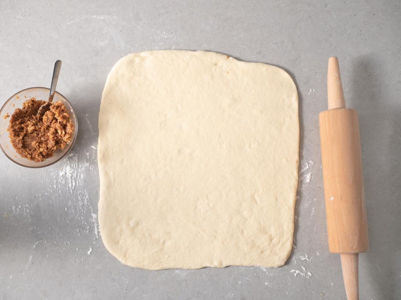 Zawijanie ciasta drożdżowego z nadzieniem na cynamonki: