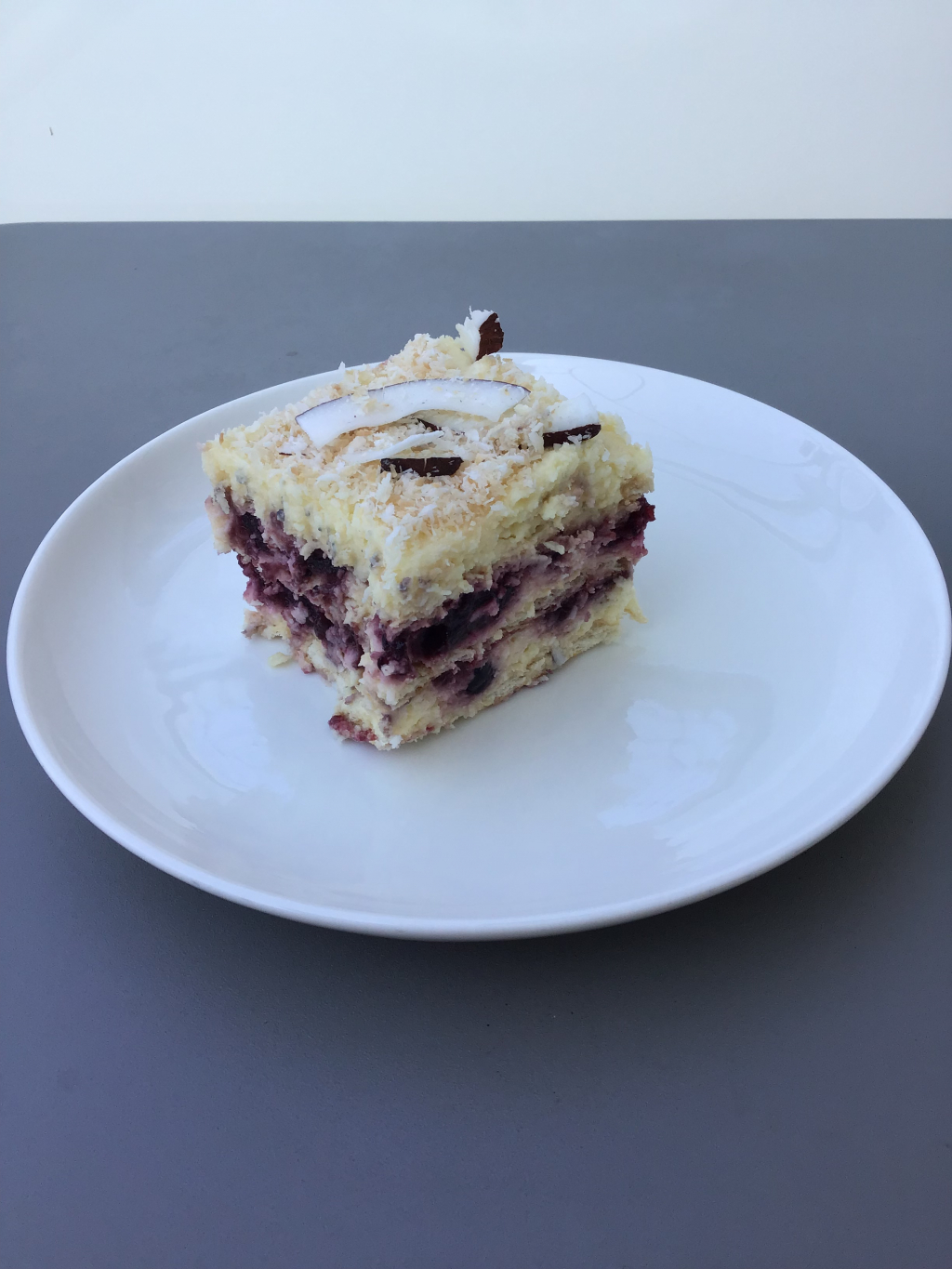 Raffaello & czarna porzeczka bez pieczenia - ideał dla zabieganych łasuchów oraz wielbicieli prostych w przygotowaniu słodkości! 😄 Odmianą od klasycznego przepisu jest kwaskowy dżem porzeczkowy, który świetnie przełamuje słodycz budyniowo-kokosowego kremu. Dodatkowo smak całego deseru dopełniają prażone wiórki kokosowe, ich zapach podczas prażenia jest po prostu obłędny. Jest to kolejna propozycja prostego ciasta bez pieczenia. Polecam! 🍰❤️
