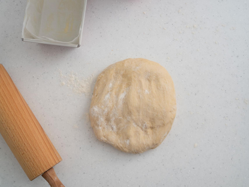 Rozwałkuj na prostokąt, tak by krótszy z boków był szerokością keksówki (30 cm), a dłuższy z boków miał 60 cm.