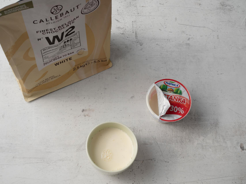 Kaletki czekolady (lub drobno pokrojoną czekoladę) zalej gorącą śmietanką. Wymieszaj do całkowitego rozpuszczenia się czekolady.