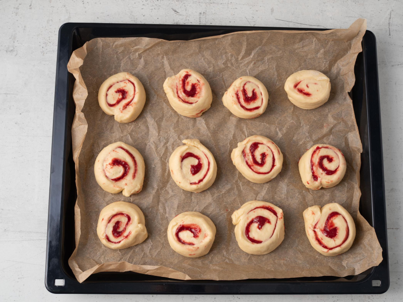 Zawiń w rulon, poktój na 12 plastrów. Przełóż do formy wyłożonej papierem.