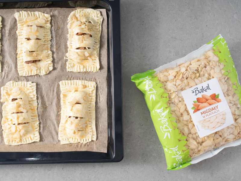 Dodaj jeszcze na wierzch płatki migdałów i wstaw do nagrzanego do 190°C piekarnika. Piecz ciastka przez 22-25 minut.