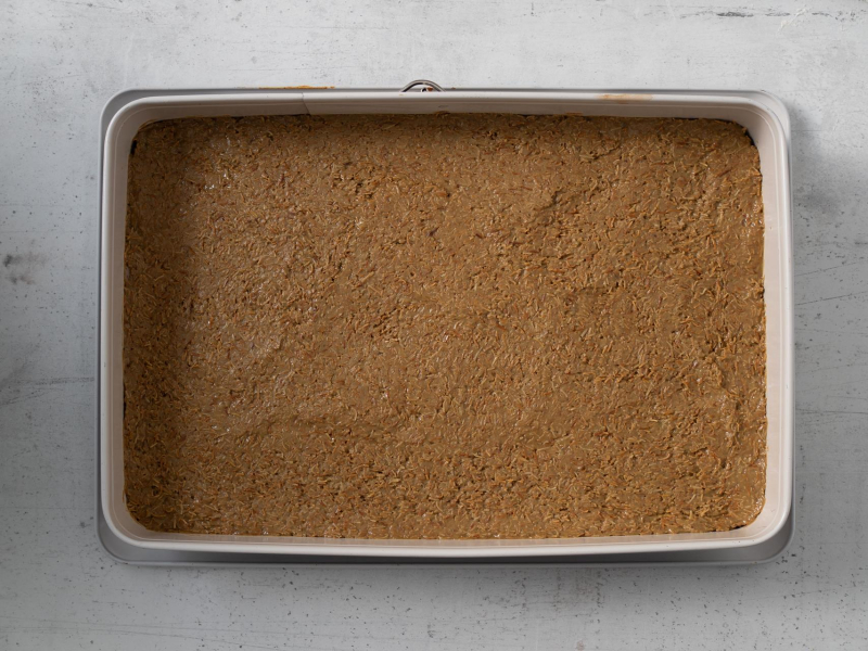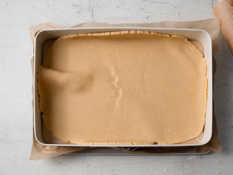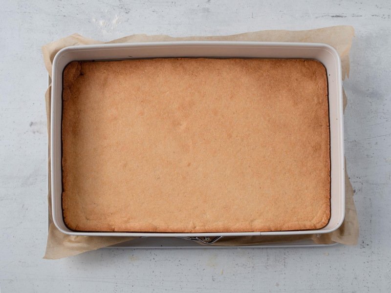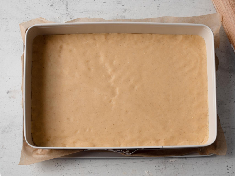 Spód formy o wymiarach 25 x 38 cm wyłóż papierem do pieczenia.