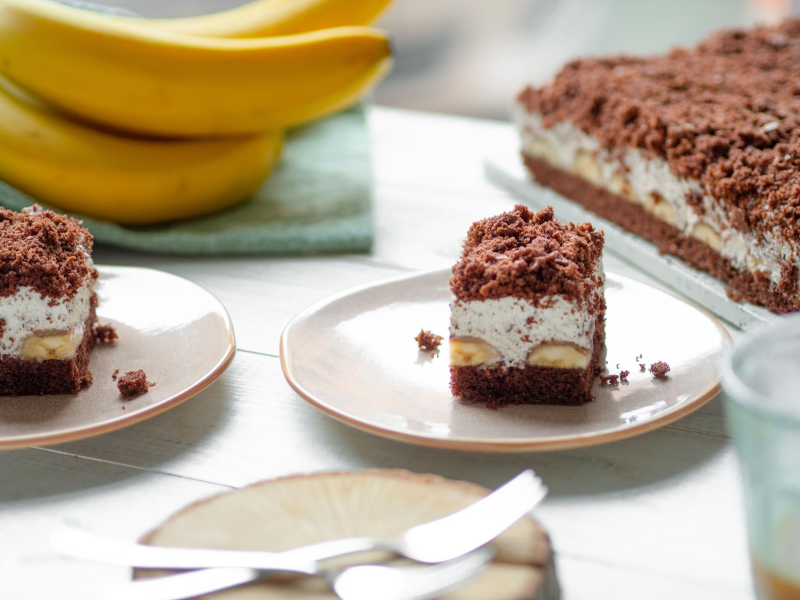 To klasyczne kakaowe ciasto🍫 z bananami i kremem śmietankowym, które robi się bez pośpiechu, ale bez stresu. Najpierw puszysty spód, potem słodkie banany🍌🍌🍌 (tym razem skarmelizowane na masełku), lekka bita śmietana i charakterystyczna „kopczykowa” góra. Ten kopiec kreta z dużej blachy jest prosty, a jednocześnie robi wrażenie, nawet jeśli pieczesz go pierwszy raz.