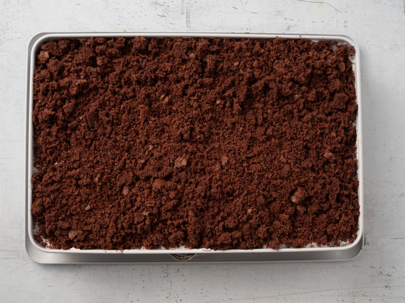Wierzch posyp okruchami z biszkoptu. Odstaw na kilka godzin do lodówki.