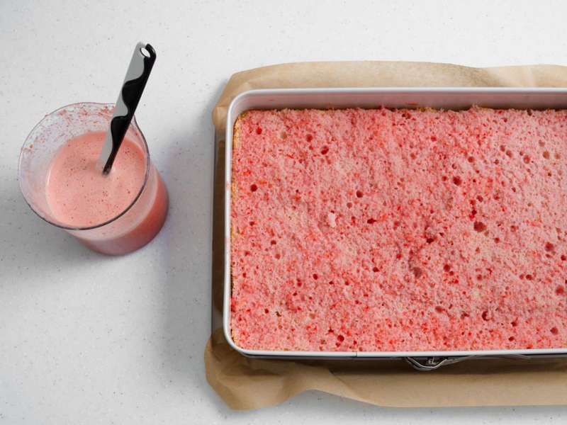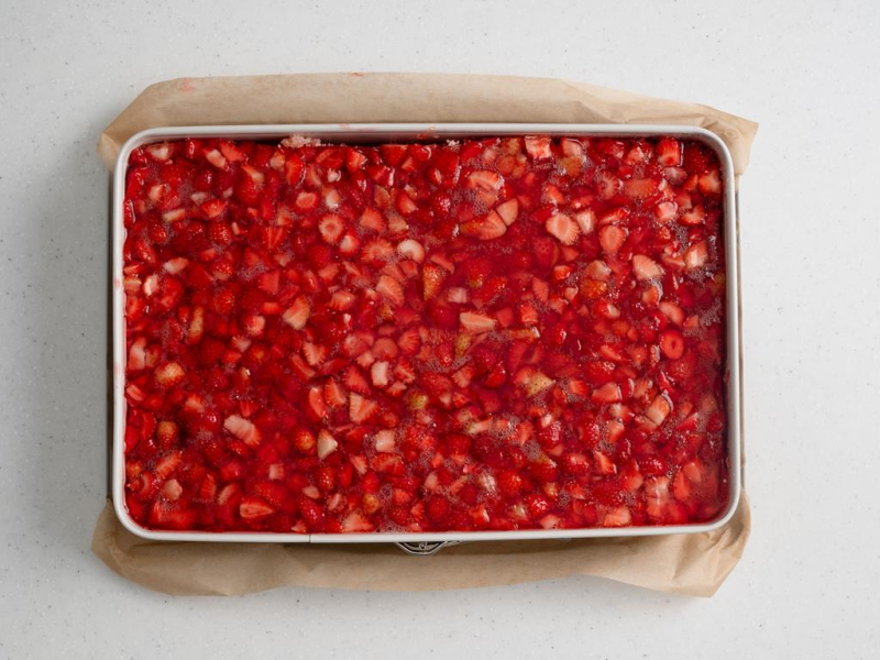 Letnia wariacja na temat klasycznego biszkoptu z kremem i galaretką z truskawkami! Co zrobić, żeby smak owoców był bardziej intensywny? Dodać ich jeszcze więcej do ciasta z galaretką!