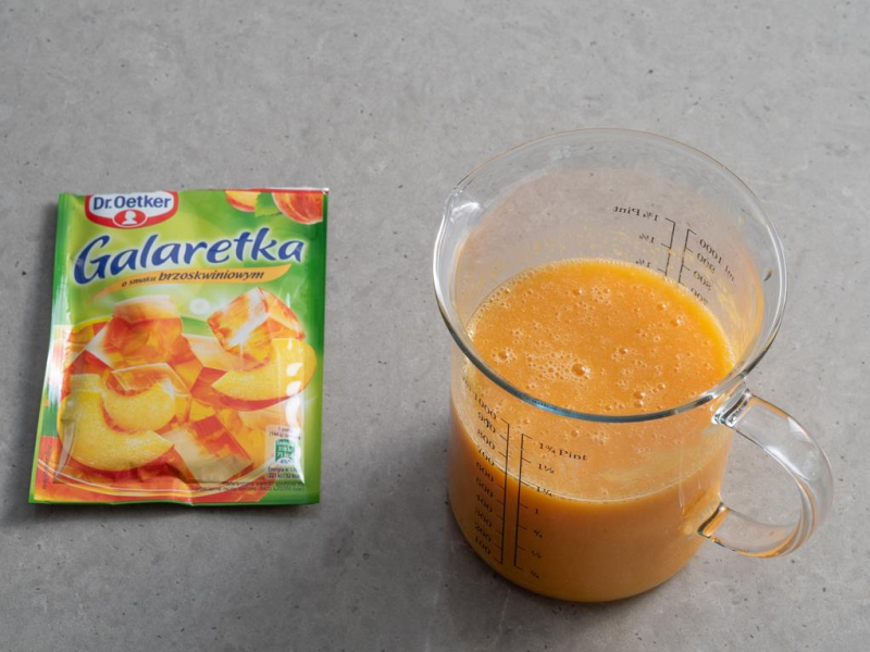 Brzoskwinie zblenduj na gładką masę i wymieszaj z galaretką.