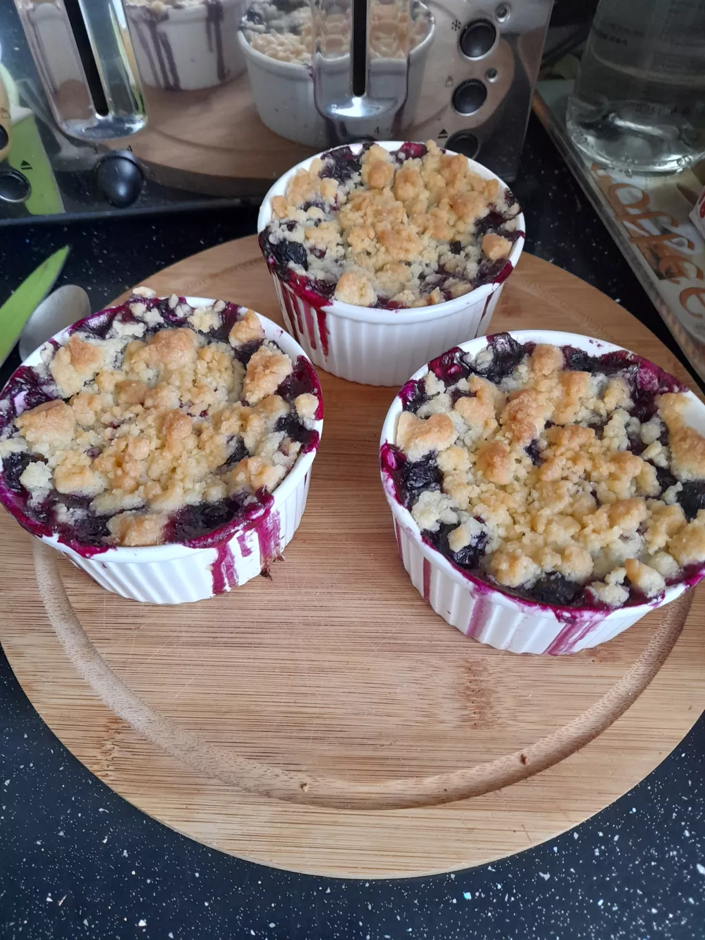 | Link do przepisu: https://wszystkiegoslodkiego.pl/przepisy/desery-mini/owoce-pod-kruszonka-z-budyniem |