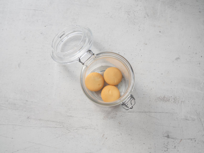 Na dnie słoiczków poukładaj okrągłe biszkopty.