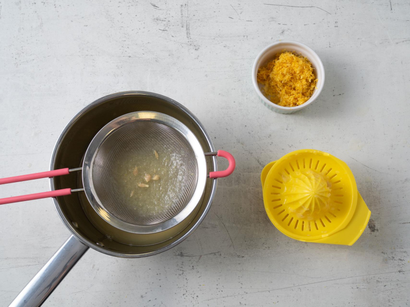 Wyciśnij sok z cytryn i przelej przez sitko, by pozbyć się pestek.
