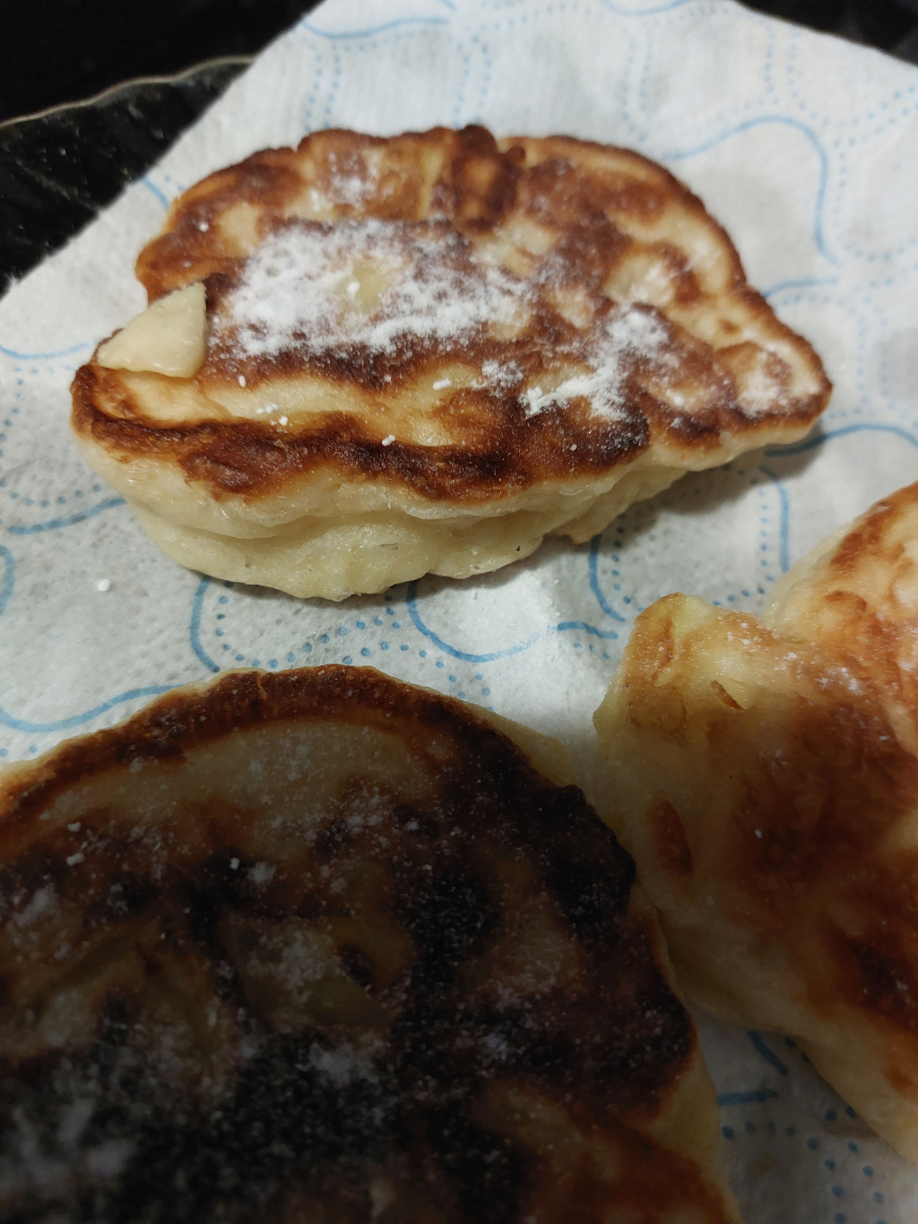 Usmażone racuszki odkładaj na ręcznik papierowy, żeby odsączyć je z nadmiaru tłuszczu. Przed podaniem oprósz cukrem pudrem.