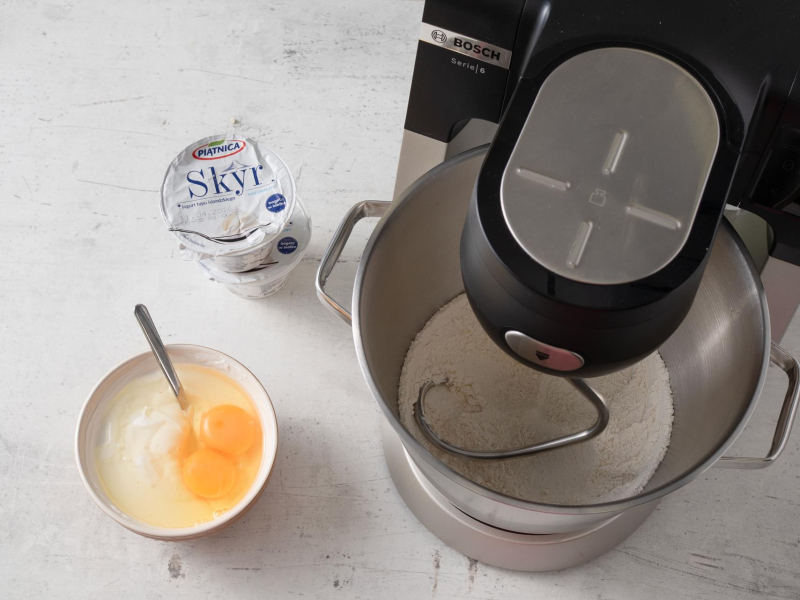 Skyr i jajka powinny być w temperaturze pokojowej. Wyciągnij je wcześniej z lodówki do ogrzania.