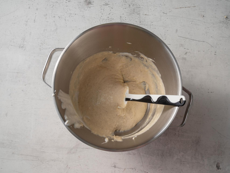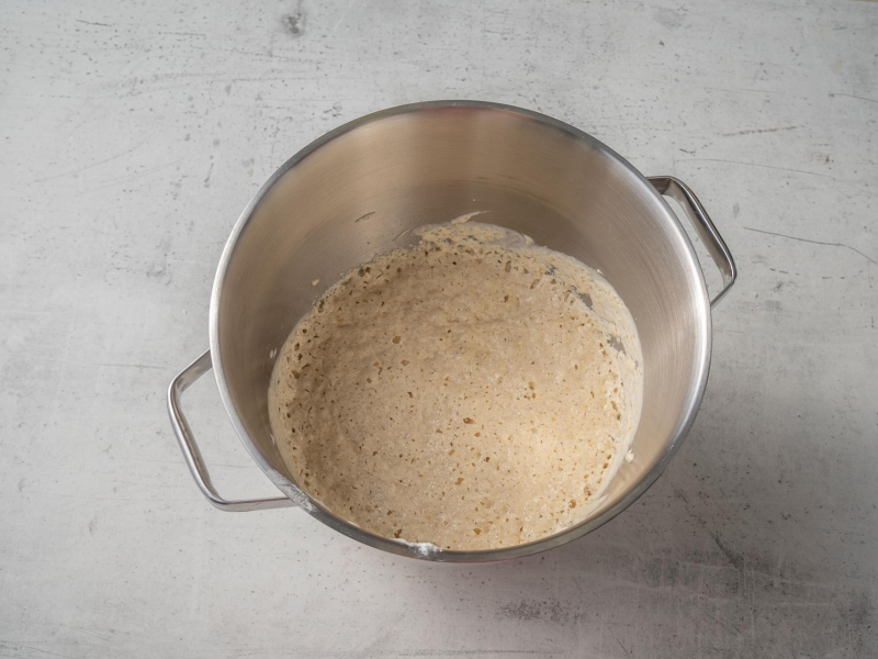 Przelej do miski i zagnieć do połączenia składników. Przykryj ściereczką lub owiń folią spożywczą, żeby nie obsychało. Odstaw w ciepłe miejsce do wyrośnięcia.