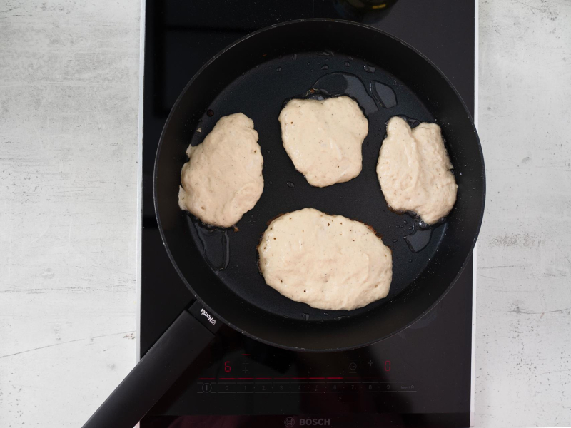 Rozgrzej patelnię z olejem. Placuszki smaż z obu stron na złoty kolor.