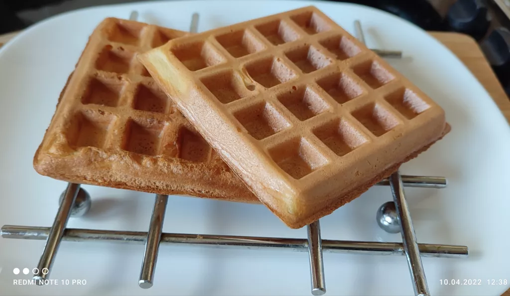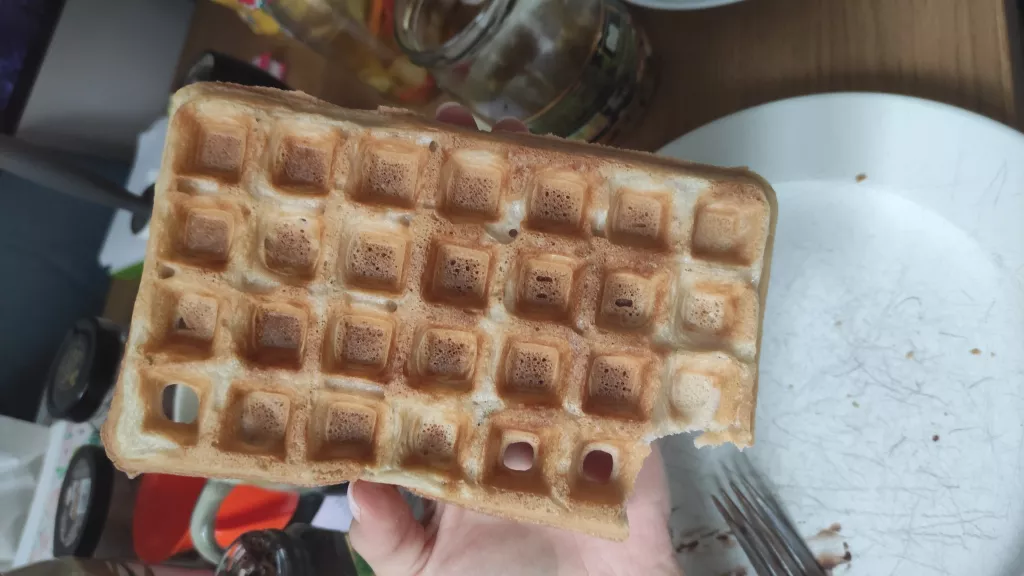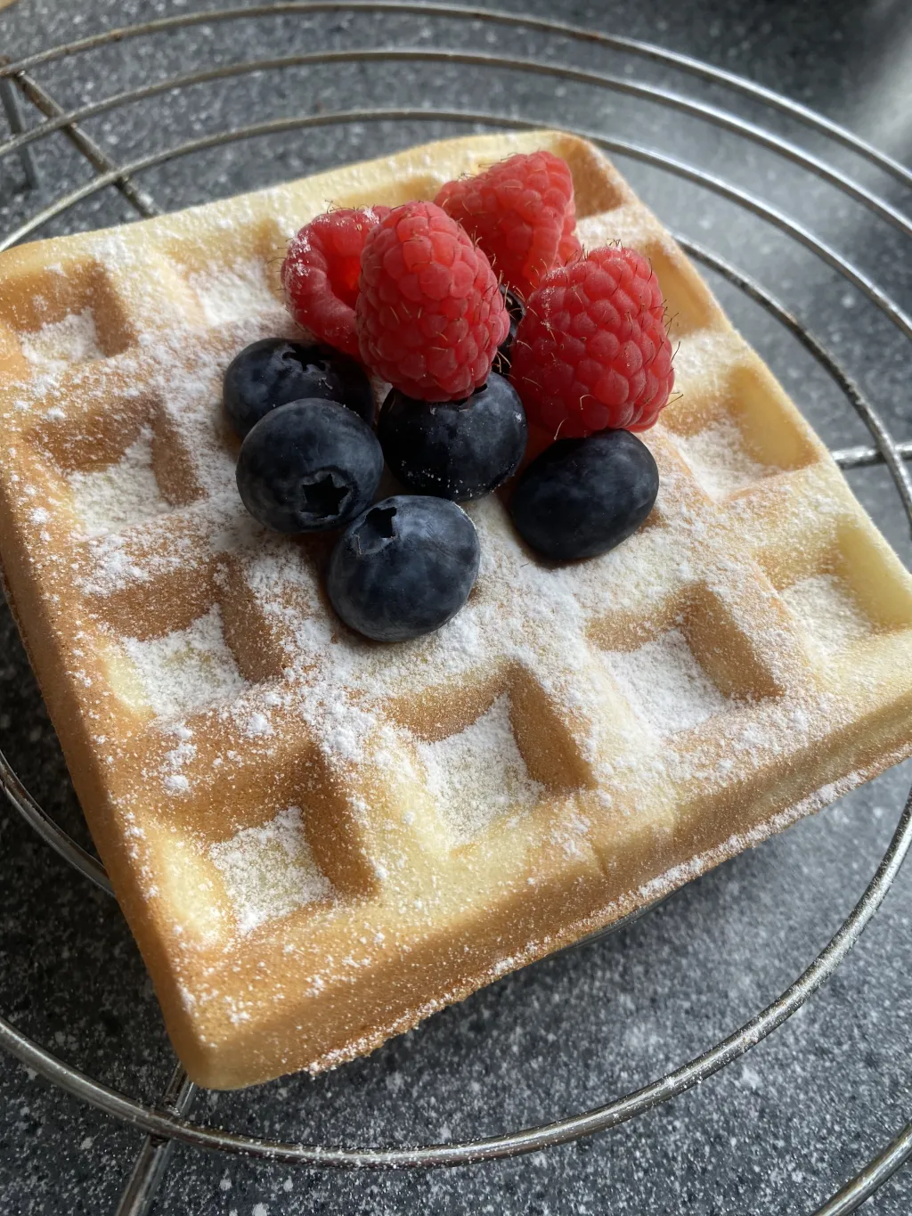 ✔️ wyjmij gofry na kratkę do studzenia. W przeciwnym razie zatrzymają w sobie wilgoć i w rezultacie będą miały gumowatą konsystencję, a tego chcemy uniknąć.