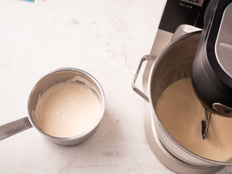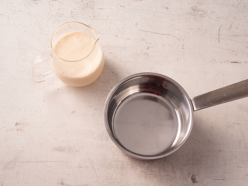 Mleko przelej do garnka i zagotuj. Przykryj i odstaw do wystudzenia.