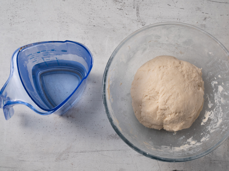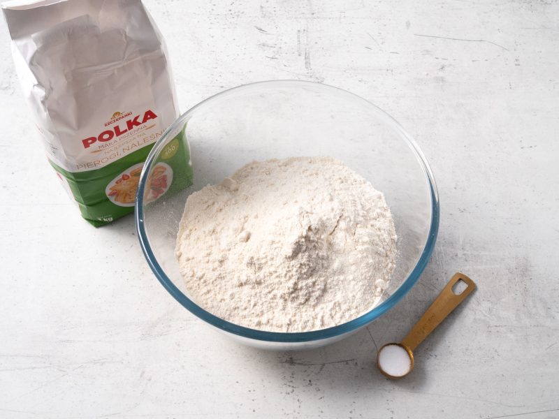 Stopniowo dodawaj gorącą wodę i zagniataj ciasto do momentu, aż będzie elastyczne i przestanie kleić się do rąk.