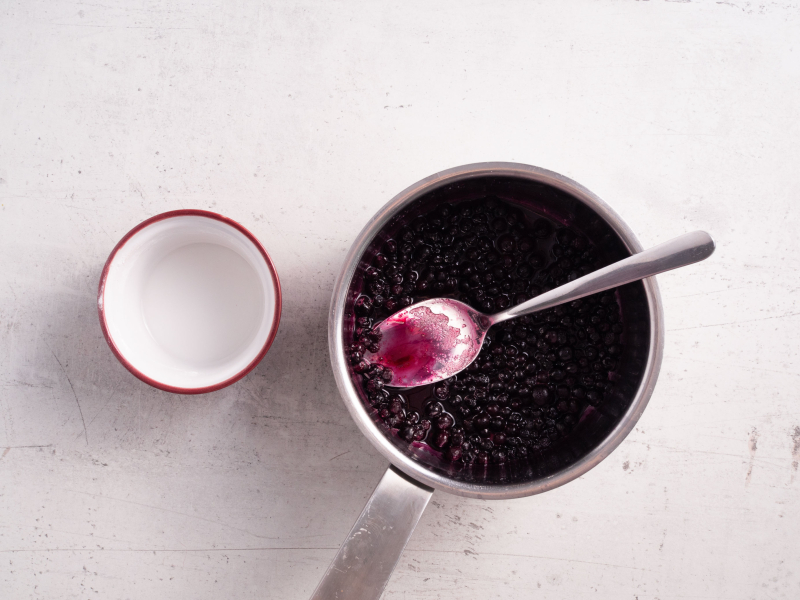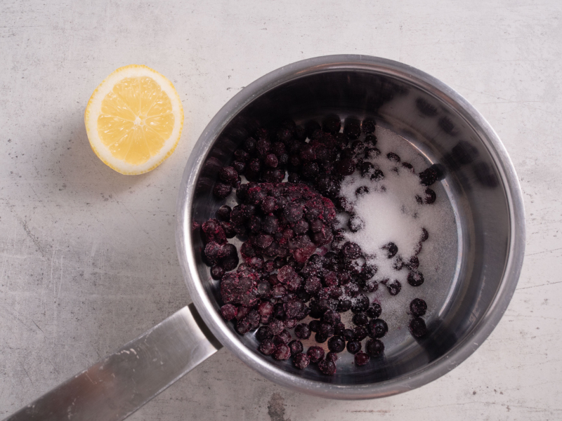 W rondelku zagotuj jagody z cukrem i sokiem z cytryny.