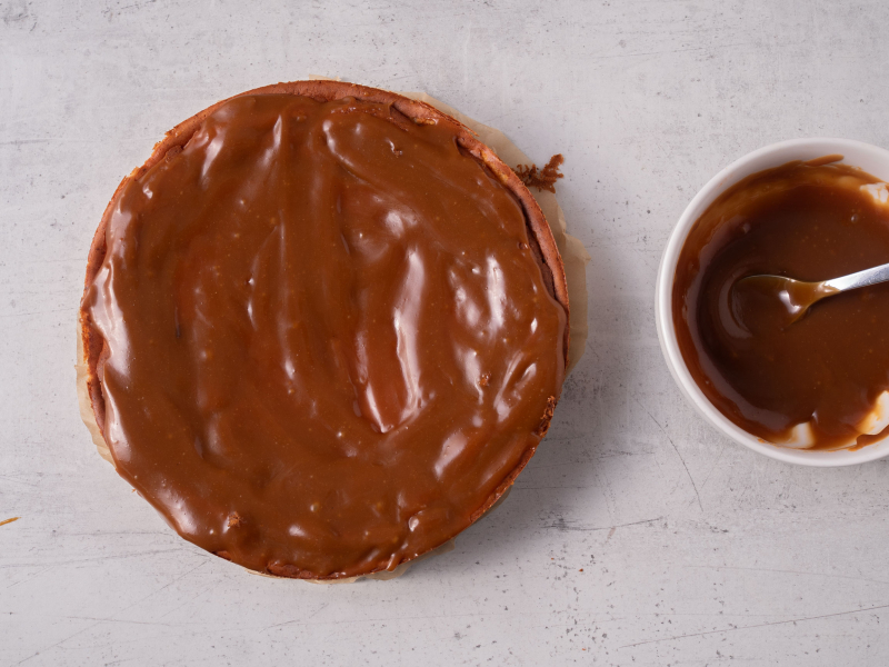 Tak, karmel możesz zrobić nawet 2–3 dni wcześniej i przechowywać w lodówce. Przed użyciem wystarczy go lekko podgrzać, żeby odzyskał płynną konsystencję.