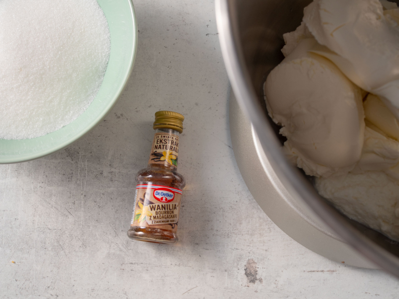 Dodac cukier oraz ekstrakt z wanilią.